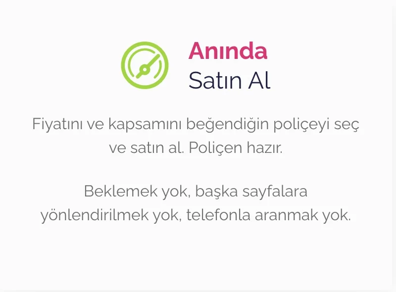 Öncelikli olarak müşterilerimizi temsil etmemiz ve onların menfaatleri doğrultusunda hareket etmemizdir. Bu misyonla her zaman müşterilerimizin tarafındayız ve 20+ sigorta şirketi teklifini tek bir sayfada görmelerini, hem teminatları hem de fiyatları objektif olarak karşılaştırmalarını sağlıyoruz. Böylece müşterilerimiz ihtiyaçlarına en uygun sigortayı kolayca belirliyor ve online olarak satın alabiliyor. Ayrıca satış sonrası herhangi bir ihtiyacınızda 10 yıllık tecrübeli ekibimiz 7/24 desteğe hazır.